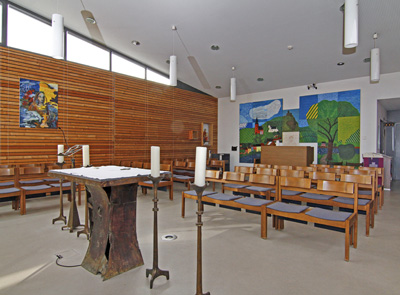 Hier finden Seelsorge und Gottesdienste an einem Ort statt, der dazu dient zur Ruhe zu kommen, zu beten oder einfach einen Moment innezuhalten.